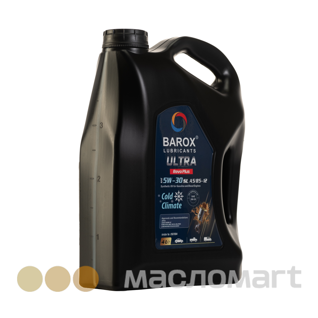 BAROX ULTRA REVO PLUS 5W-30 API SL, AСEA A5/B5-12 - высокоэффективное маловязкое моторное масло, созданное на основе синтетических базовых масел и премиального пакета присадок. Прибывайте в пункт назначения быстрее и безопаснее с максимальной производительностью двигателя и запасом мощности. Превосходит самые высокие требования к испытаниям, предъявляемые известными производителями.