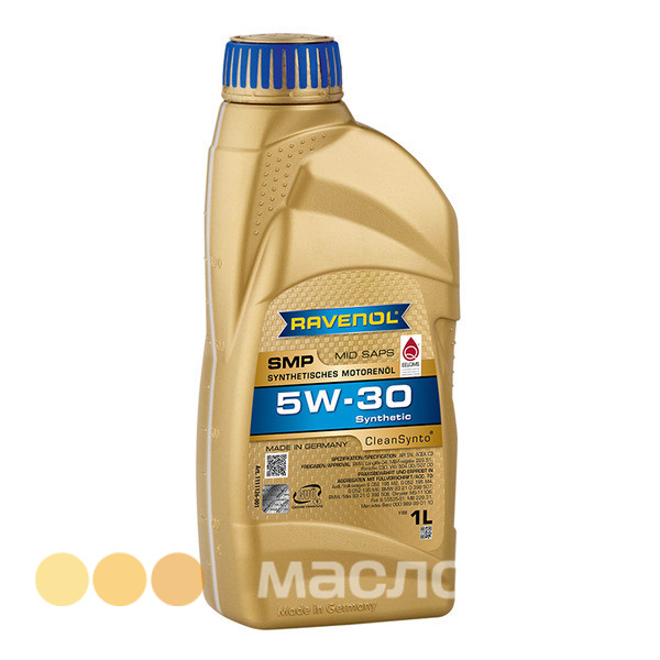 RAVENOL SMP SAE 5W-30 - синтетическое легкотекучее среднезольное (MID SAPS) моторное масло, изготовленное с применением технологии CleanSynto® для легковых бензиновых и дизельных моторов