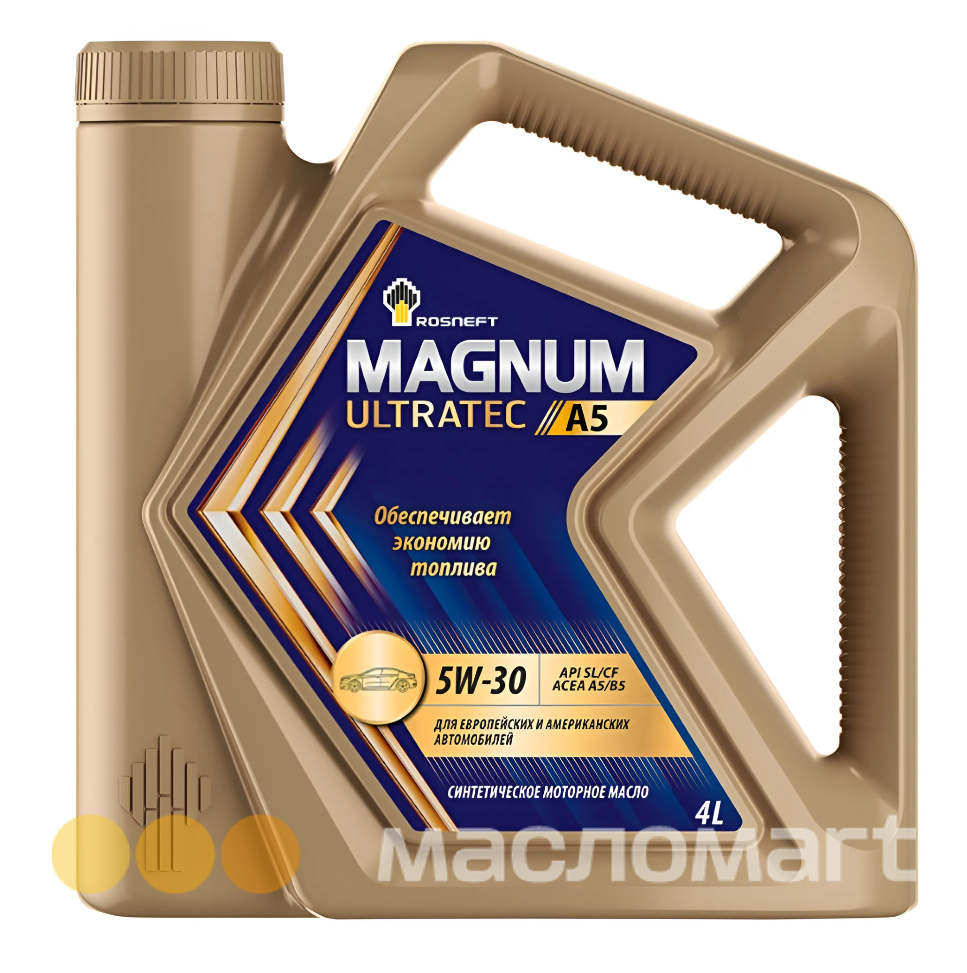 Rosneft Magnum Ultratec А5 5W-30 – всесезонное полностью синтетическое энергосберегающее моторное масло нового поколения для самых современных двигателей, обеспечивающее экономию топлива за счет низкого значения вязкости при высокой температуре и высокой скорости сдвига (HTHSV - High Temperature High Shear Viscosity). Отличается низкой испаряемостью и сокращает расход топлива.